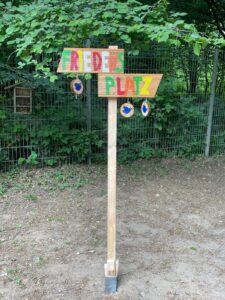Mit viel handwerklichem Geschick baute ein Erstklässler der Waldschule ein neues Schild für unseren Friedensplatz auf dem Schulhof. Vorab plante er genau wie das Schild aussehen sollte und nahm Maß für die Schraubenlöcher und Abstände auf dem Stiel. „Ist das echtes Werkzeug?“ Und „Darf ich wirklich mit der Säge sägen?“ waren Fragen des Schülers bevor er loslegte. Aber dann wurde gesägt, geschliffen, gebohrt, geschraubt und gemalt. Alle Tätigkeiten führte er mit echtem Werkzeug aus und schon nach dem ersten Einsatz der Bohrmaschine konnte er sie selbständig – mit etwas Unterstützung – bedienen und den Bohraufsatz einsetzen. Die Buchstaben für die Aufschrift schrieb der Schüler auf einer Tafel vor und malte sie dann gewissenhaft auf den Holzbrettern aus. Voller Stolz präsentierte der „kleine“ Handwerker sein fertiges Bauwerk in der Schulversammlung. Seine MitschülerInnen klatschten und hielten den Daumen hoch für sein tolles Schild. Unser Hausmeister Herr Wennekers stellte das Schild auf dem Schulhof auf. Natürlich durfte dabei der frischgebackene Handwerker zuschauen. Neben das Schild wird noch eine neue Friedensbank platziert, auf der die Schulkinder der Waldschule Streit besprechen können.