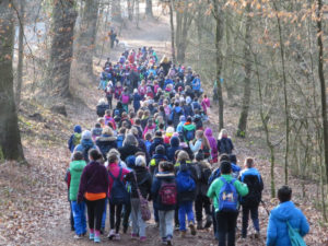 Der Himmel zeigte sich bewölkt, was aber niemanden störte, als Schulleiterin Frau Schubert am Samstag, 25. Mai, gegen 10 Uhr zum Mikrofon griff, um die zahlreichen Besucherinnen und Besucher des diesjährigen Schulfestes herzlich willkommen zu heißen. Danach sangen zur Begrüßung vor allem die Schülerinnen und Schüler aus voller Kehle das selbstgeschriebene Waldschullied, musikalisch begleitet von Chorleiterin Frau Aßmann und Sozialpädagogin Frau Pollmeier.
