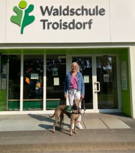 Schulleitung (mit Stella) Schulleiterin Frau Britta Schubert mit Schulhund Stella Konrektorin Frau Martina Hartisch