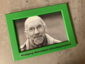 Herr Wennekers hält unser Schulgebäude und das Gelände in Schuss. Als unser Hausmeister sorgt er dafür, dass alles schnell wieder repariert ist.