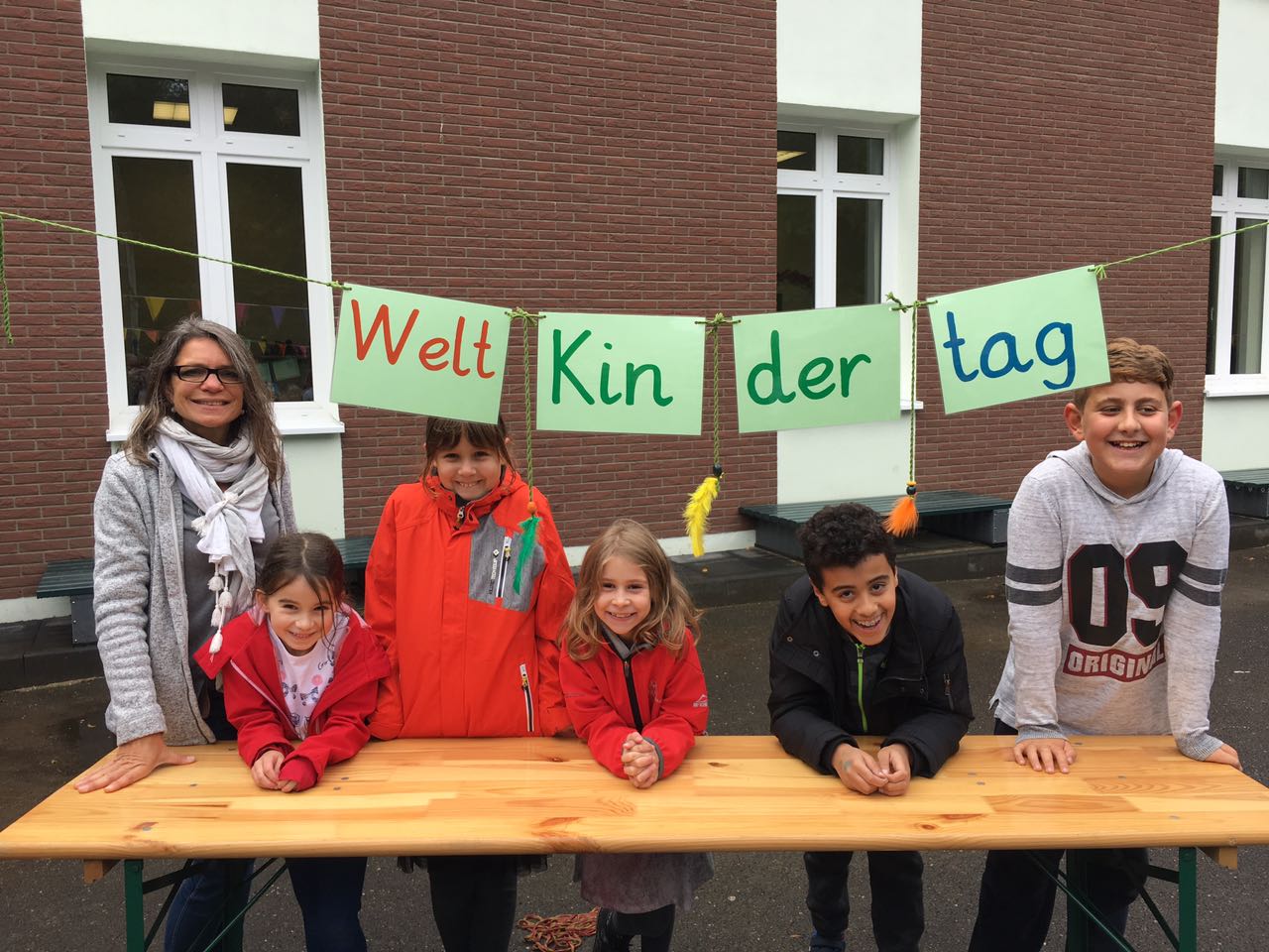 Einen Weltkindertag darf man nicht einfach unbeachtet lassen, dies dachte sich jedenfalls das Schülerparlament der Waldschule Troisdorf und organisierte aus diesem Grund am 20. September 2017 ein abwechslungsreiches Spielefest. Pünktlich um 9.45 Uhr stürmten die 243 Schüler an der Heerstraße auf den mit bunten Fahnen geschmückten Schulhof und konnten dort nach Lust und Laune eine ganze Stunde lang ausgiebig spielen und malen. Außerdem standen für die Kinder Kekse und ein kleines Geschenk bereit, wie einen Radiergummi, einen dicken Bleistift oder Malkreide. Schüler und Lehrer waren sich am Ende einig: „Das hat Spaß gemacht.“ Und die Schulleiterin Frau Schubert hatte noch eine besondere Überraschung parat: „Heute gibt es Hausaufgabenfrei“, gab sie unter großem Jubel bekannt.